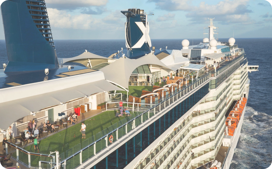 - Lawn Club – газон на верхній палубі зі справжньою травою площею 2000 кв.м. для пікніків, відпочинку (можна ходити босоніж, лежати в гамаках) і активніших ігор, наприклад, боче або крокет.