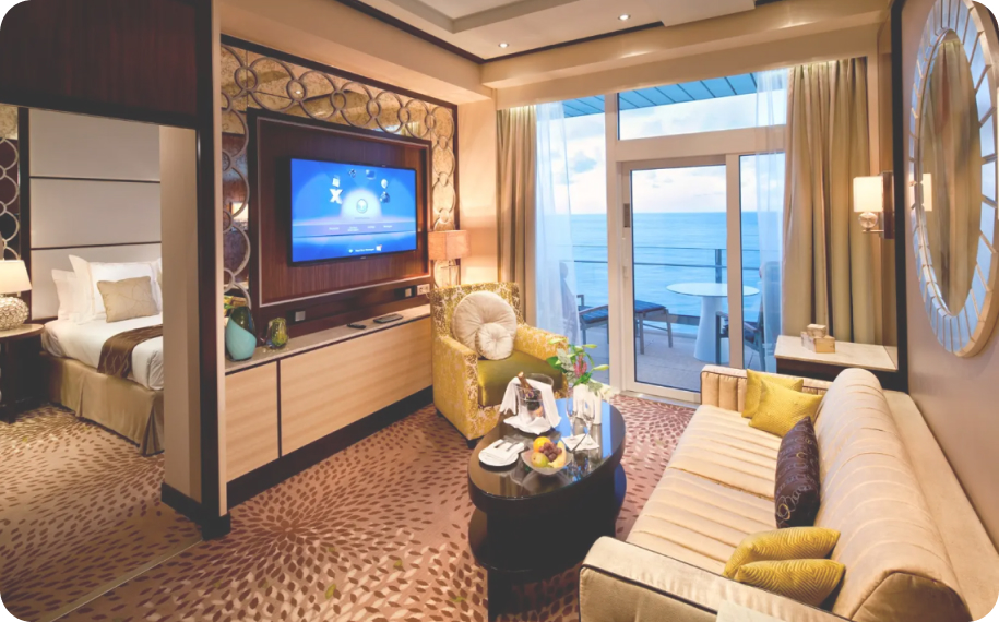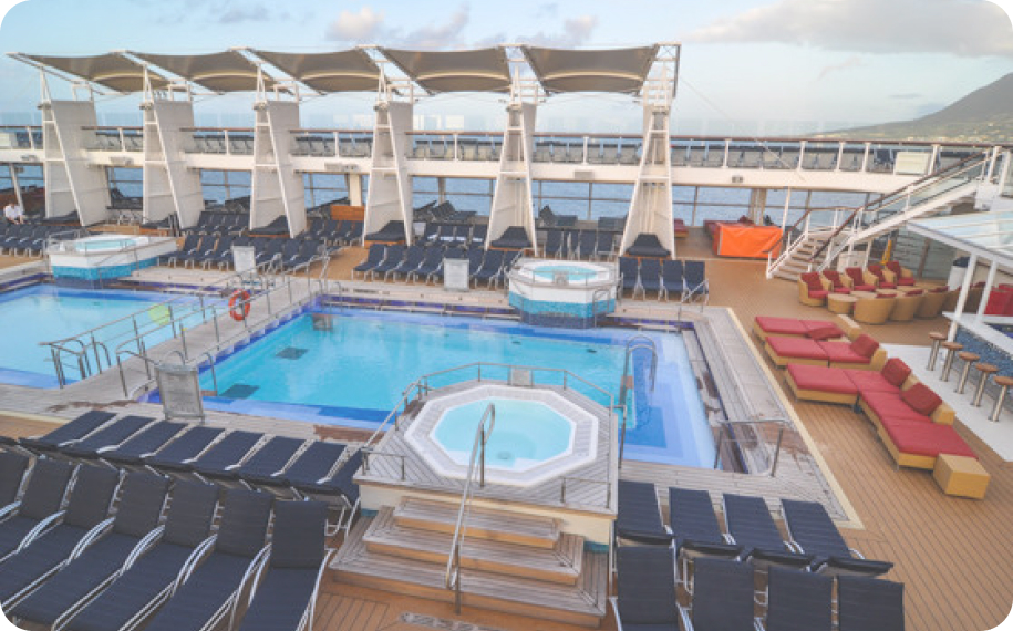 - Усамітнені альтанки (Alcoves) на компанію до 4-х осіб – затишні затінені зони на верхній палубі з видом на море та на трав’яний газон.