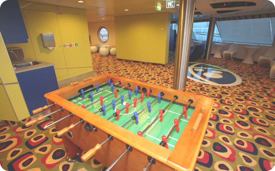 Клуби ShipMates (для найменших) та Fun Factory (6-11 років) влаштовують тематичні вечірки, шоу талантів, естафети, перегляд фільмів, інтерактивні та командні ігри. Особлива увага приділяється дітям-аутистам. - Клуб для підлітків Xclub проводить тематичні вечірки, спортивні турніри, командні ігри, караоке, юні режисери можуть вести зйомку навколо корабля за допомогою GoPros, а потім редагувати власний фільм в iLounge.