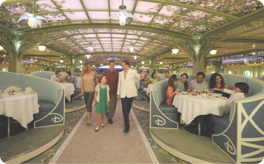 Жоден пасажир не залишиться голодним на круїзному лайнері Disney Dream! Вони завжди зможуть смачно поїсти у кількох ресторанах, кожен з яких має унікальний тематичний інтер’єр та пишається своїми фірмовими стравами. У ресторані Royal Palace, звичайно, обслуговують по-королівськи, і всі дівчатка тут відчують себе справжніми принцесами. А у ресторані Animator’s Palate можна самим створювати унікальні десерти.