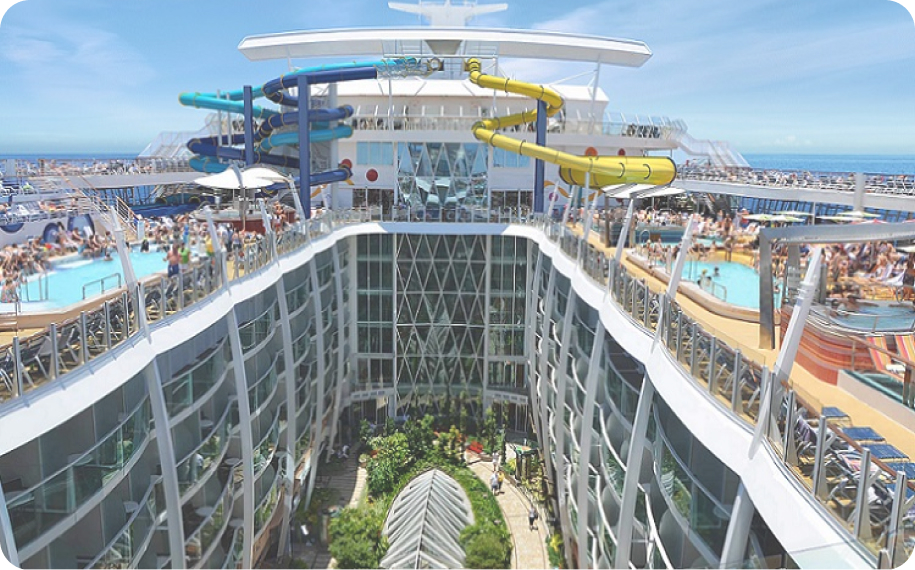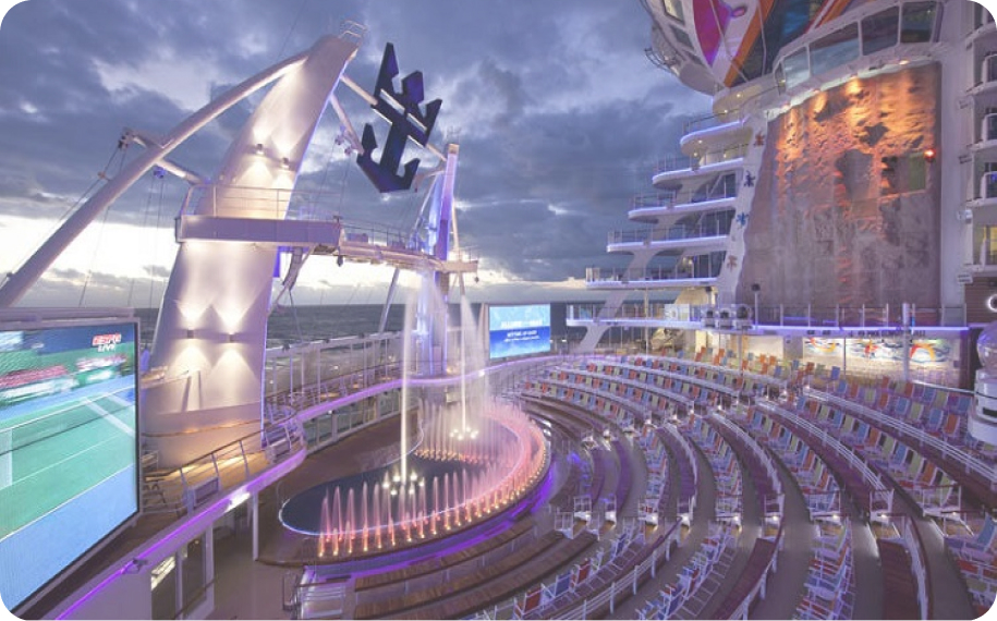 Територія лайнера поділена на 7 зон, де пасажири можуть відпочивати та розважатися: Central Park, Royal Promenade, Broadwalk, Pools, Spa & Fitness, Entertainment Place, Youth Zone. Тут зібрана величезна колекція розваг та занять, які принесуть море задоволення дорослим та дітям.