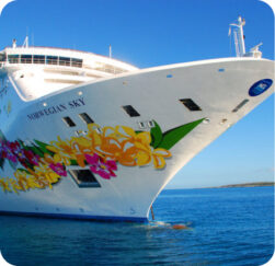 Круїзне судно Norwegian Sky, що належить компанії Norwegian Cruise Line, було сконструйовано в Німеччині та здійснив свій перший рейс у 1999 році. 2008-го був на реконструкції, 2013-го зробили його суттєве оновлення. Цей білий 13-палубний красень 260 м завдовжки, 32 м завширшки може перевозити на борту 1928 пасажирів та 766 членів екіпажу. Він досить маневрений, щоб зайти в такі місця та порти, які не можуть помістити величезні судна.